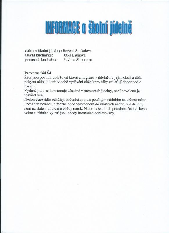I Informace o ŠJ